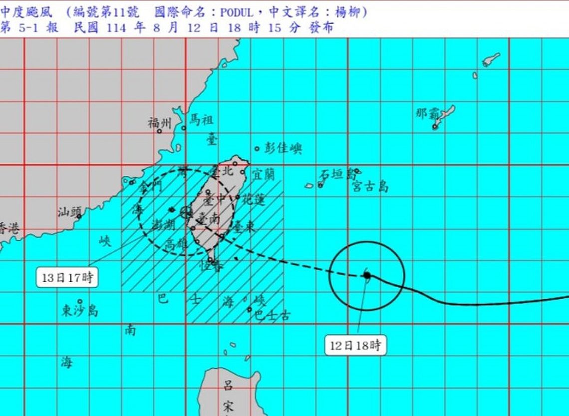 中颱楊柳直逼台灣 13日整天風雨最明顯