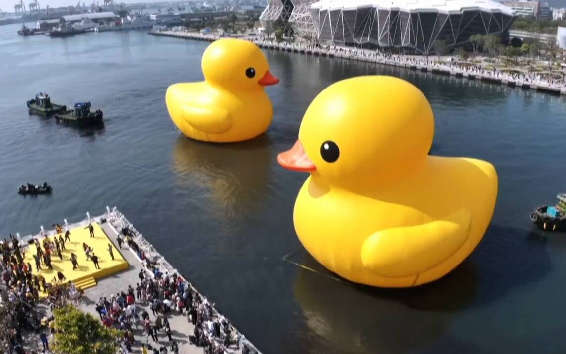 陳其邁也指出,10年來,高雄城市正在改變,也一直在不斷的進步,這次,非常感謝藝術家霍夫曼能夠把他那麼有療癒效果的兩個兩隻小鴨,再一次的重返高雄。
