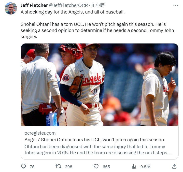不過日前卻傳出大谷翔平在稍早的比賽中手部不適提前退場,且根據球界知名人物爆料大谷翔平手臂韌帶斷裂,疑似整個賽季即將報銷,目前手術情況未知,但唯一可以確定的是本次傷勢將會對大谷翔平的MVP獎項與合約造成巨大影響。