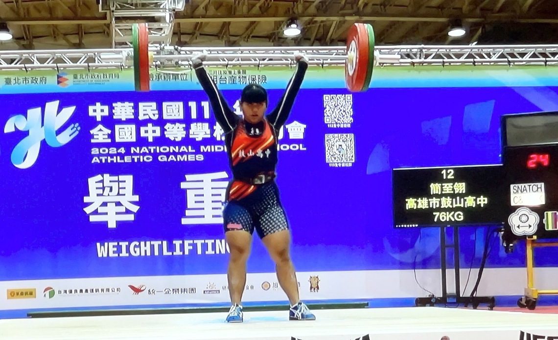 【漾新聞記者陳雯萍/高雄報導】已經成為培訓台灣舉重國手重要學校的鼓山高中,這次在全國中等學校運動會中,首日的舉重比賽,國中部舉重女將簡志翎,在降級76公斤級中,第二次挺舉以91公斤打破大會紀錄,並以總和154公斤為高雄市奪一金。加上寶來國中的1金,首日高雄市在舉重項目就勇奪雙金!