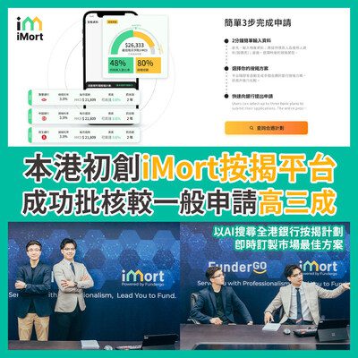 香港2025年5月29日 /美通社/ — 隨著人工智能(AI)技術革新金融服務,香港首創的「iMort AI 銀行按揭平台」,為準業主、換樓人士及投資者,智能化提供量身定制的銀行按揭計劃。自平台推出以來,iMort已服務逾8,000名用戶,處理按揭總額突破40億港元。iMort AI 銀行按揭平台提供超過 40 個來自各家銀行的按揭貸款計劃,透過結合機器學習與即時數據分析,iMort平台協助用戶精準配對最優惠的銀行按揭計劃,從繁複的申請流程中解放時間與精力,讓置業之路更高效、更安心。